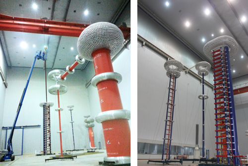 主要試驗設(shè)備:1500kV工頻試驗變壓器,1500V標(biāo)準(zhǔn)電容,4400kV沖擊電壓測量系統(tǒng),±2400kV直流高壓發(fā)生器,彎曲負(fù)荷試驗裝置,50kA大電流試驗裝置淋雨試驗裝置,數(shù)字局部放電儀,精密高壓電容電橋等。