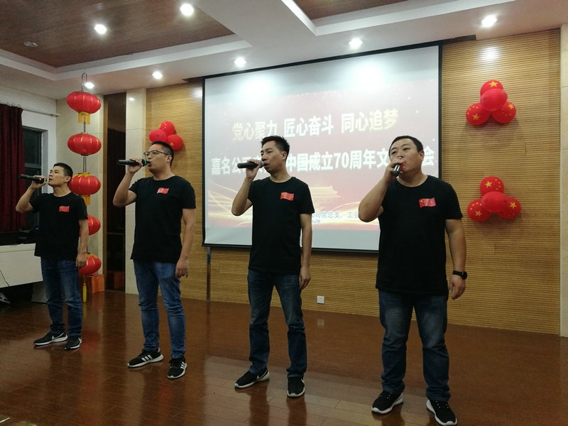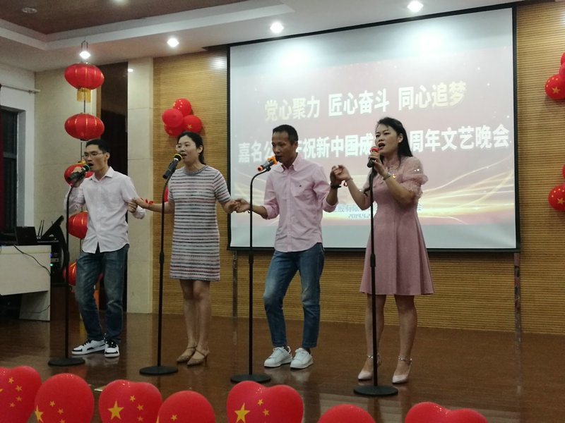 今年是新中國成立70周年,又恰逢嘉名建廠25周年。9月28日晚,公司中高層管理者與員工在嘉名員工公寓區(qū)活動樓歡聚一堂,自編自導自演了一場熱烈、精彩、別致的文藝晚會,向新中國成立70周年華誕和嘉名建廠25周年獻禮。