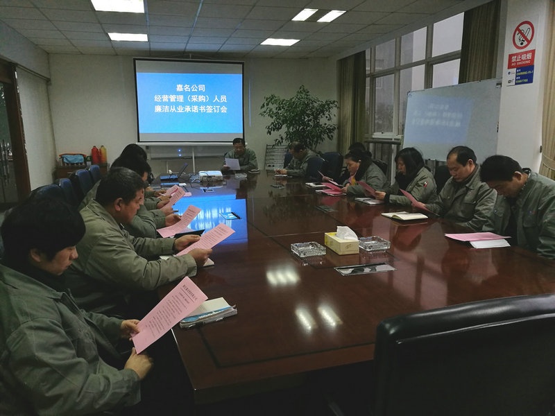 會議指出,對公司廉潔風險重點崗位的經(jīng)營管理(采購)人員簽訂廉潔從業(yè)承諾書,是加強公司經(jīng)營管理,推進依法治企的需要;是加強公司干部隊伍建設(shè),從政治上關(guān)愛干部的需要;是加強企業(yè)黨建工作,實施從嚴治黨的需要。