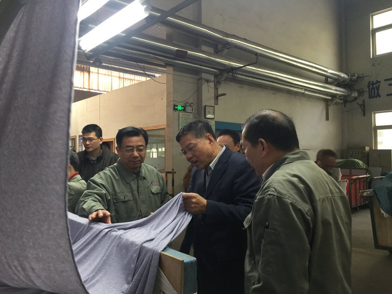 徐紀平副秘書長等領導到染部車間現(xiàn)場,實地察看了公司生產(chǎn)現(xiàn)場,向公司領導了解了公司今年經(jīng)營情況和轉(zhuǎn)型升級工作。莫總向調(diào)研組領導介紹了公司基本情況和近年來公司推進轉(zhuǎn)型升級工作,特別是今年實施的淘汰落后產(chǎn)能實施智能化生產(chǎn)技改項目。調(diào)研組領導在車間里仔細察看了公司引進的意大利貝利尼公司生產(chǎn)的超低浴比溢流多功能生態(tài)勻染染色機,以及中央控制室,染料助劑自動化輸送系統(tǒng),對公司實施智能化生產(chǎn)技改的轉(zhuǎn)型升級舉措給予高度肯定,鼓勵公司領導進一步通過轉(zhuǎn)型升級,推動企業(yè)向信息化、自動化、智能化方向發(fā)展,實現(xiàn)節(jié)能減排,減員增效,提高企業(yè)競爭力,促進傳統(tǒng)企業(yè)的新發(fā)展。