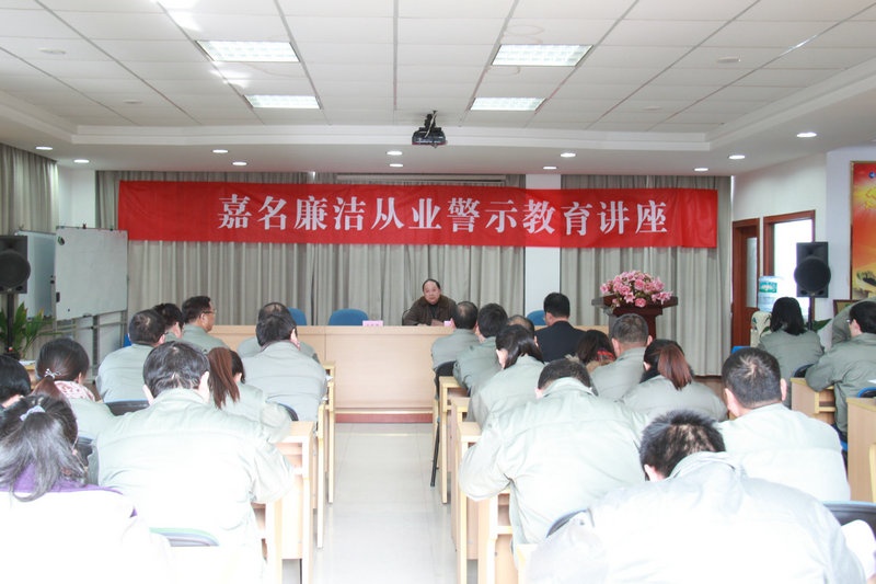 為加強(qiáng)經(jīng)營管理人員的從業(yè)廉潔教育,促進(jìn)公司上下認(rèn)清形勢、提高認(rèn)識、遵章守紀(jì)、廉潔從業(yè),12月26日下午,公司舉辦廉潔從業(yè)警示教育專題講座。公司領(lǐng)導(dǎo),各部門、各事業(yè)部負(fù)責(zé)人,全體營銷經(jīng)理、外協(xié)人員,部分倉管員等50多人聽取講座。講座邀請桐鄉(xiāng)市檢察院原黨組成員、副檢察長沈俊夫就非公企業(yè)職務(wù)經(jīng)濟(jì)犯罪的預(yù)防進(jìn)行了深入講解,講座還宣貫了《公司員工廉潔從業(yè)規(guī)定》,公司莫總講了話。