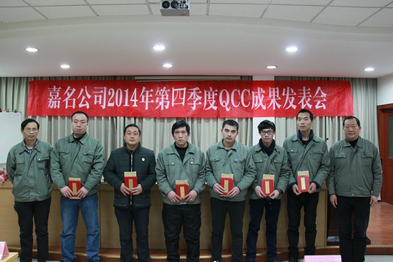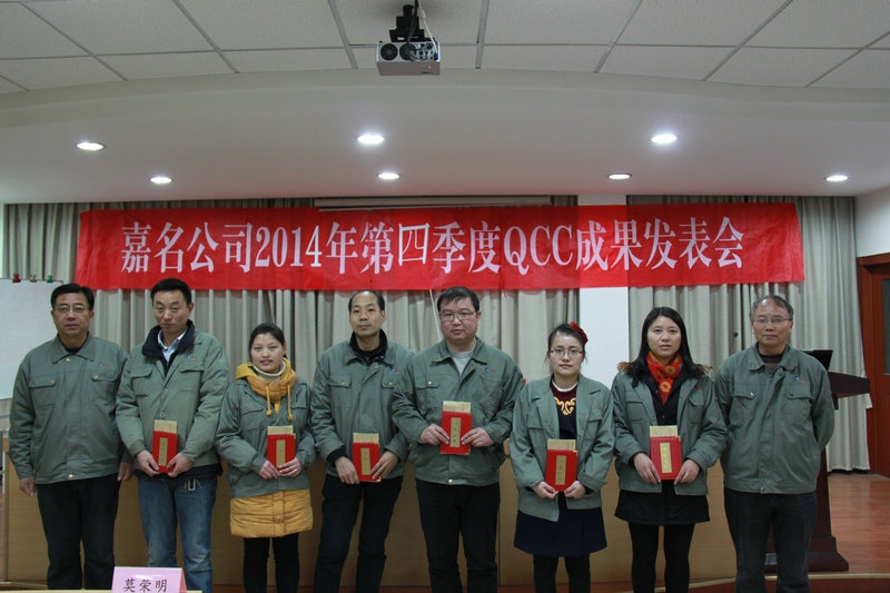 1月29日晚,公司召開了第六屆(2014年四季度)QCC成果發(fā)表會,染整事業(yè)部等6個部門66名員工參與的12項QCC成果會上發(fā)表。動力設(shè)備部的“坯布噴蒸汽機的自動化改造”,染整事業(yè)部的“降低成品布內(nèi)在指標(biāo)的返修率”、“控制印花底布PH值的穩(wěn)定性”、“降低染化料成本”,經(jīng)編事業(yè)部的“提高90克絲光絨成品檢驗合格率”,紡織事業(yè)部的“減少坯布剪辦浪費”獲得優(yōu)秀獎。染整事業(yè)部的“改善毛圈布橫向彈性”,動力設(shè)備部的“定型機整緯改裝”,品質(zhì)管理部的“提高檢測中心測試進度”、“降低入倉錯誤率”,印花事業(yè)部的“提高分散印花漿料的穩(wěn)定性”、“提高印花打樣配方的準(zhǔn)確性”獲得發(fā)表獎。這次發(fā)表的QCC成果共有QC小組活動。