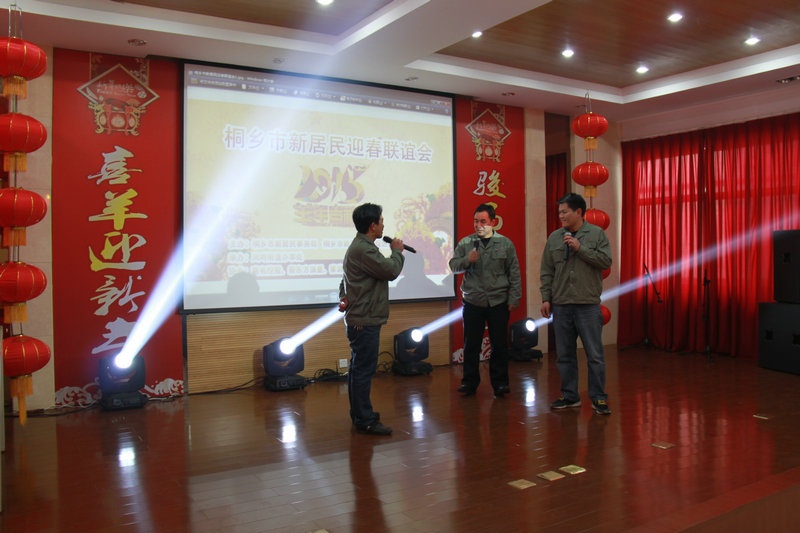 羊年到來喜洋洋,吉羊如意心歡暢。2015年1月23日下午,嘉名公司員工公寓區(qū)多功能廳內(nèi)張燈結(jié)彩,音樂悠揚(yáng),喜氣洋洋,熱鬧非凡,洋溢著節(jié)日的喜慶氣氛,桐鄉(xiāng)市新居民迎春聯(lián)誼會(huì)在這里隆重舉行。來自桐鄉(xiāng)市新居民事務(wù)局的各位領(lǐng)導(dǎo),市新居民和諧促進(jìn)會(huì)會(huì)長(zhǎng)、副會(huì)長(zhǎng),各鎮(zhèn)街道的居民事務(wù)所所長(zhǎng)與桐鄉(xiāng)市“十佳新居民”和新居民代表歡聚一堂,共迎羊年新春。