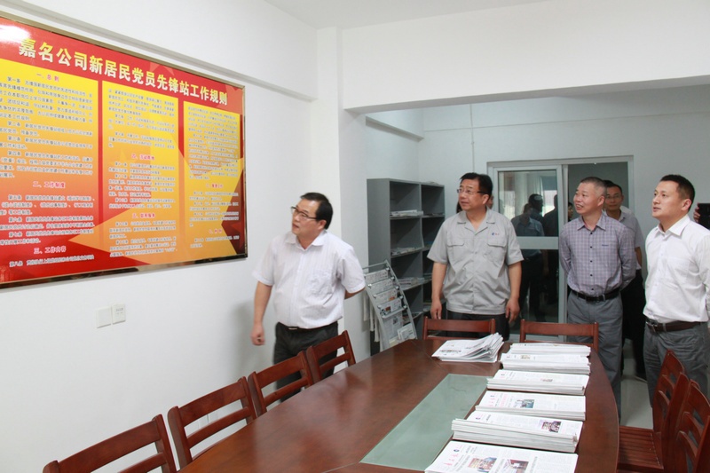 9月29日下午,桐鄉(xiāng)市新居民黨建工作現(xiàn)場(chǎng)推進(jìn)會(huì)在嘉名公司召開(kāi),市委常委、組織部長(zhǎng)湯云良出席并講話。來(lái)自全市有關(guān)部門(mén)領(lǐng)導(dǎo)及鎮(zhèn)街道的黨委組織委員、市委組織員、新居民事務(wù)所所長(zhǎng)等參加會(huì)議,我公司莫總及楊廣權(quán)、蔡小剛、李福生也參加了會(huì)議。會(huì)上,市委常委、組織部長(zhǎng)湯云良與市新居民事務(wù)局局長(zhǎng)陳建華為浙江嘉名控股有限公司新居民黨員先鋒站揭牌,鳳鳴街道等四個(gè)鎮(zhèn)(街道)介紹了新居民黨員“家園工程”建設(shè)的經(jīng)驗(yàn)做法,研究部署進(jìn)一步加強(qiáng)新居民黨建工作。與會(huì)人員還實(shí)地考察了嘉名公司新居民黨員先鋒站、嘉名員工公寓樓及活動(dòng)樓等。